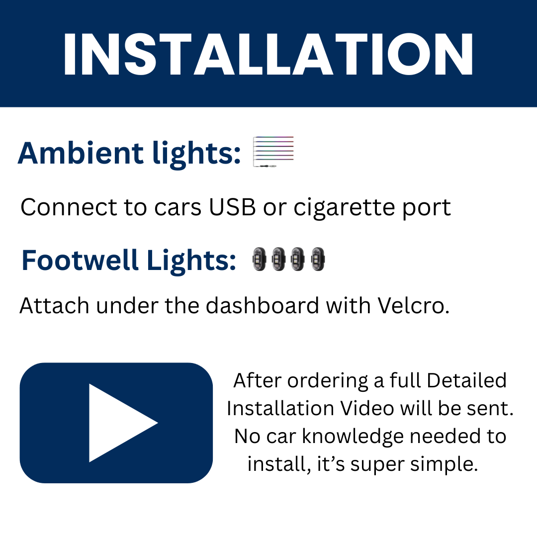 Yes! LuxMat LED lights are compatible with any car built after 1950. Each kit includes everything you need — adhesive tape, scraper, USB or cigarette adapter, and adhesive promoters — to make installation quick and secure on any car interior.